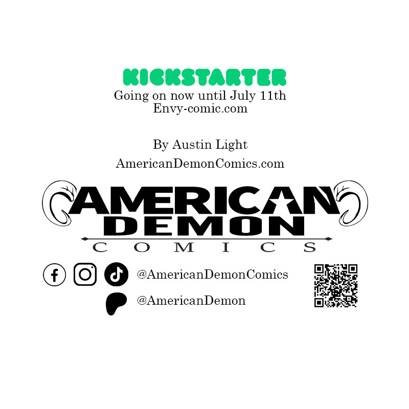 Now that’s out of the way, I wanted let you all know that this page and more will be included in the print of Envy Issue 2! You can get it now, from anywhere, if you go pledge to the kickstarter! You will get all the heart wrenching drama and demon glory action you could ask for! (And there’s still more to come!) It needs your support to fund and you can get it here!