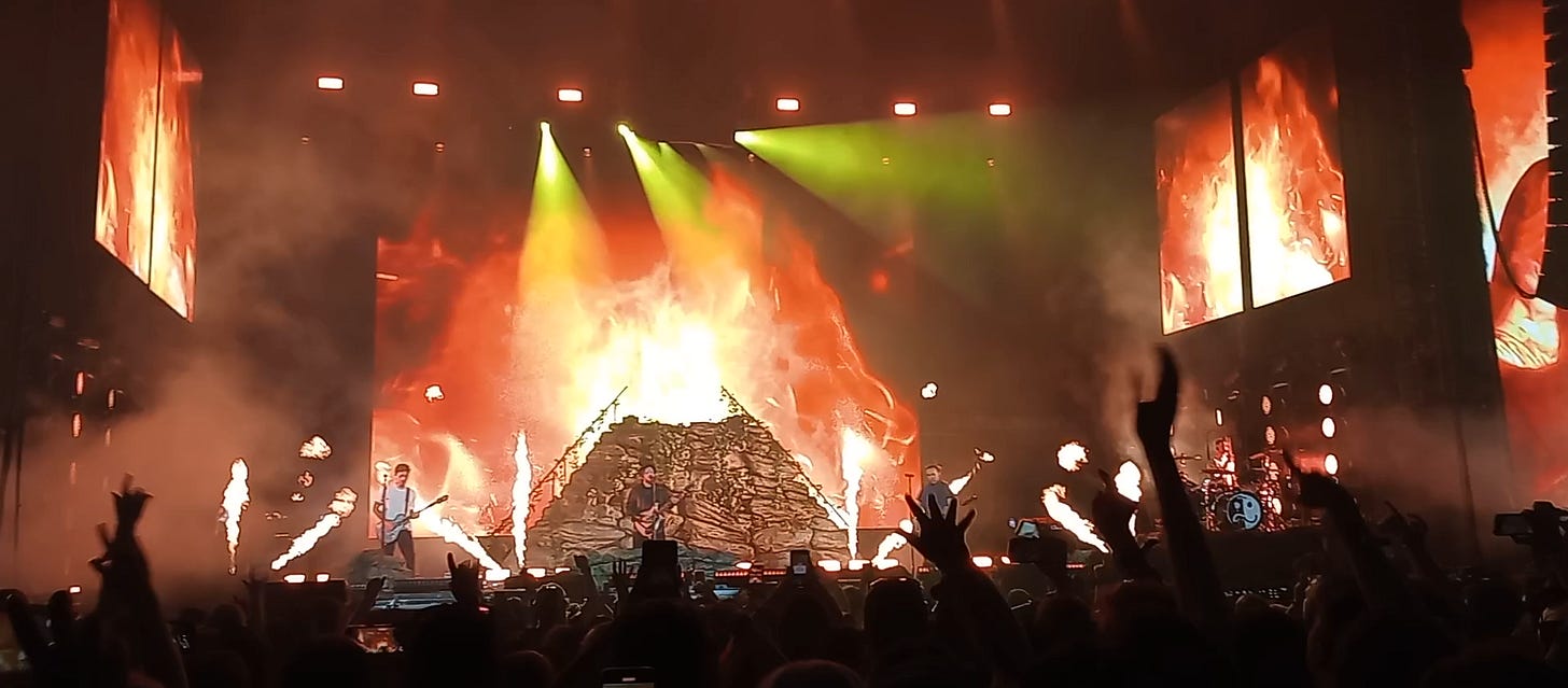 Finally, the festival itself! There were some setbacks like strained feet and legs, or expensive cocktails and drinks, but every riff and beat made it all worth it. This is a festival of headliners. Pierce the Veil, The Used, Taking Back Sunday, Simple Plan, etc. They started as early as 2:30, and yet they couldn’t prepare us for the show that Fall Out Boy had put on for us. It was a spectacle in its own right of Pyro, album sets and themes, big screen visuals, and the energy they brought. My Chemical Romance really did well, but by the time they had come out, I had used the last of my fumes on Fall Out Boy. We were also at an odd angle of the stage, so I didn’t get to see their visuals. They were perfect, though, and I only wish I had been able to maintain my energy.